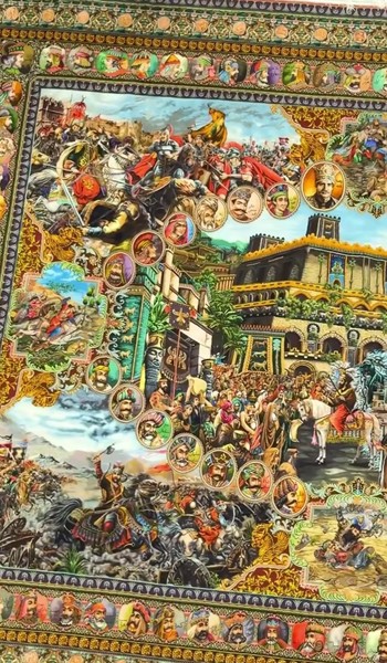 تابلوفرش سلاطین ۳۰۰ در ۴۰۰ ۷۰رج شاهکار هنر تبریزی ۴ بافنده کل پادشاهان تاریخ ایران از کیومرث تا پهلوی تخفیف به خریدار واقعی ارسال رایگان