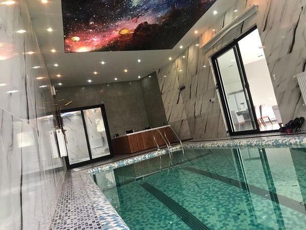 در طبقه پایین دواتاق خواب و یک اتاق خواب مستر میباشد به همراه استخر و جکوزی