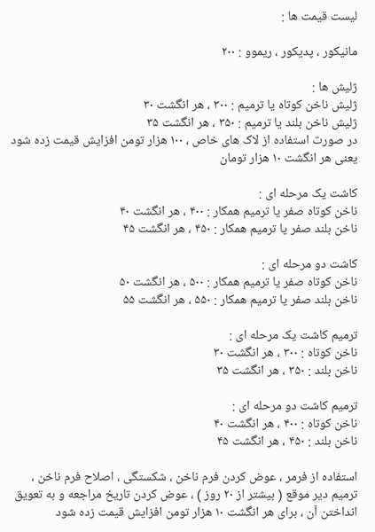 کاشت ناخن|ترمیم|ژلیش|لمینت|ژلپولیش|خدمات لاین ژل