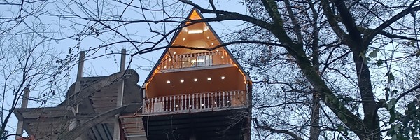 کلبه چوبی جنگلی جکوزی دار طبیعت زیبا