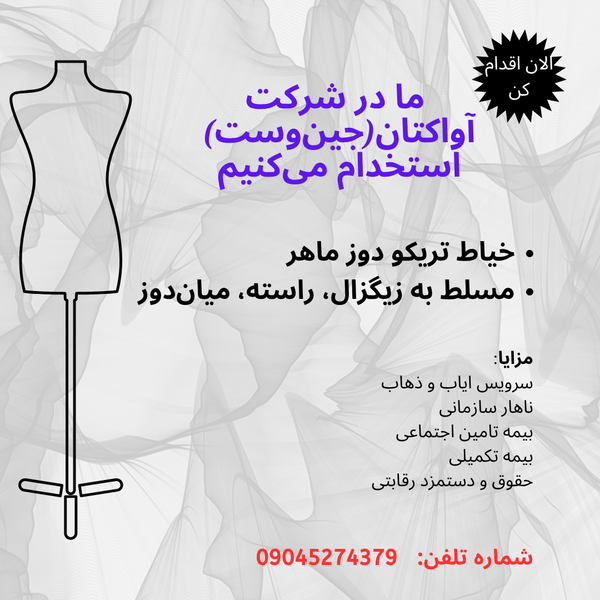 خياط ،وسط كار ،اتو كار،الگوساز و برشكار